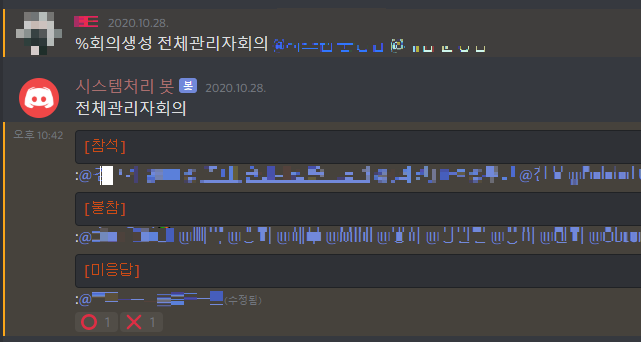 * 실제 구현 케이스 : 회의 개설 알림 및 취합 봇