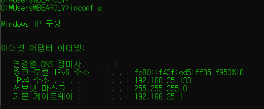 에러 발생 시 명령 프롬프트(cmd) 에서 ipconfig 쳐서 나오는 본인 IP 기입하면 됨.