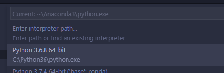 위와 같이 Select Interpreter 선택 후