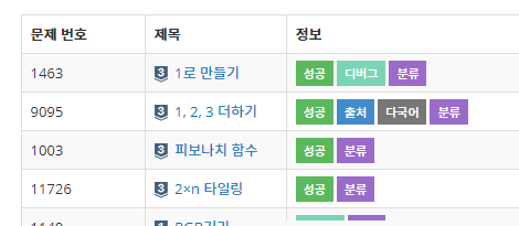 백준 1463 / 백준 9095 / 백준 1003 / 백준 11726