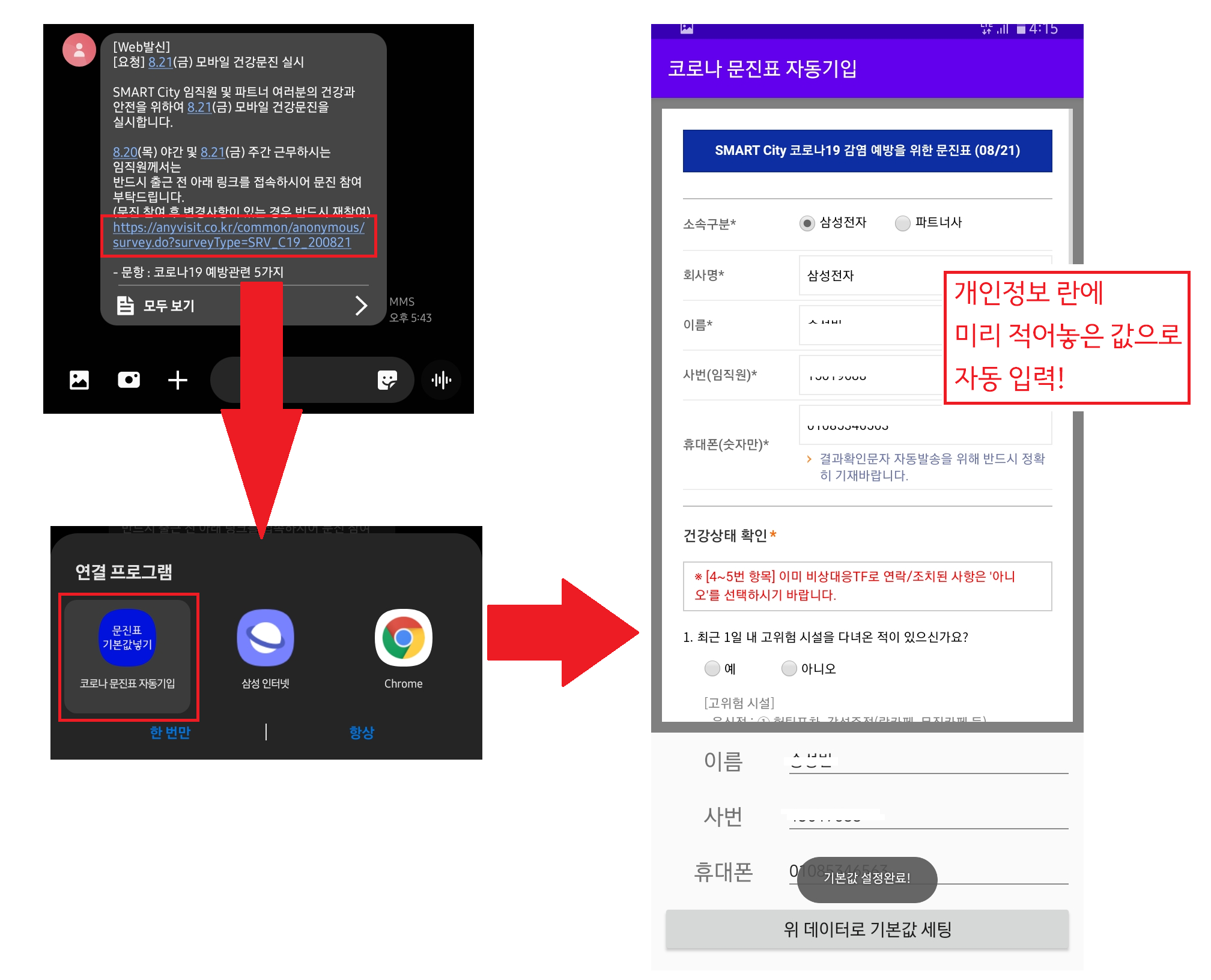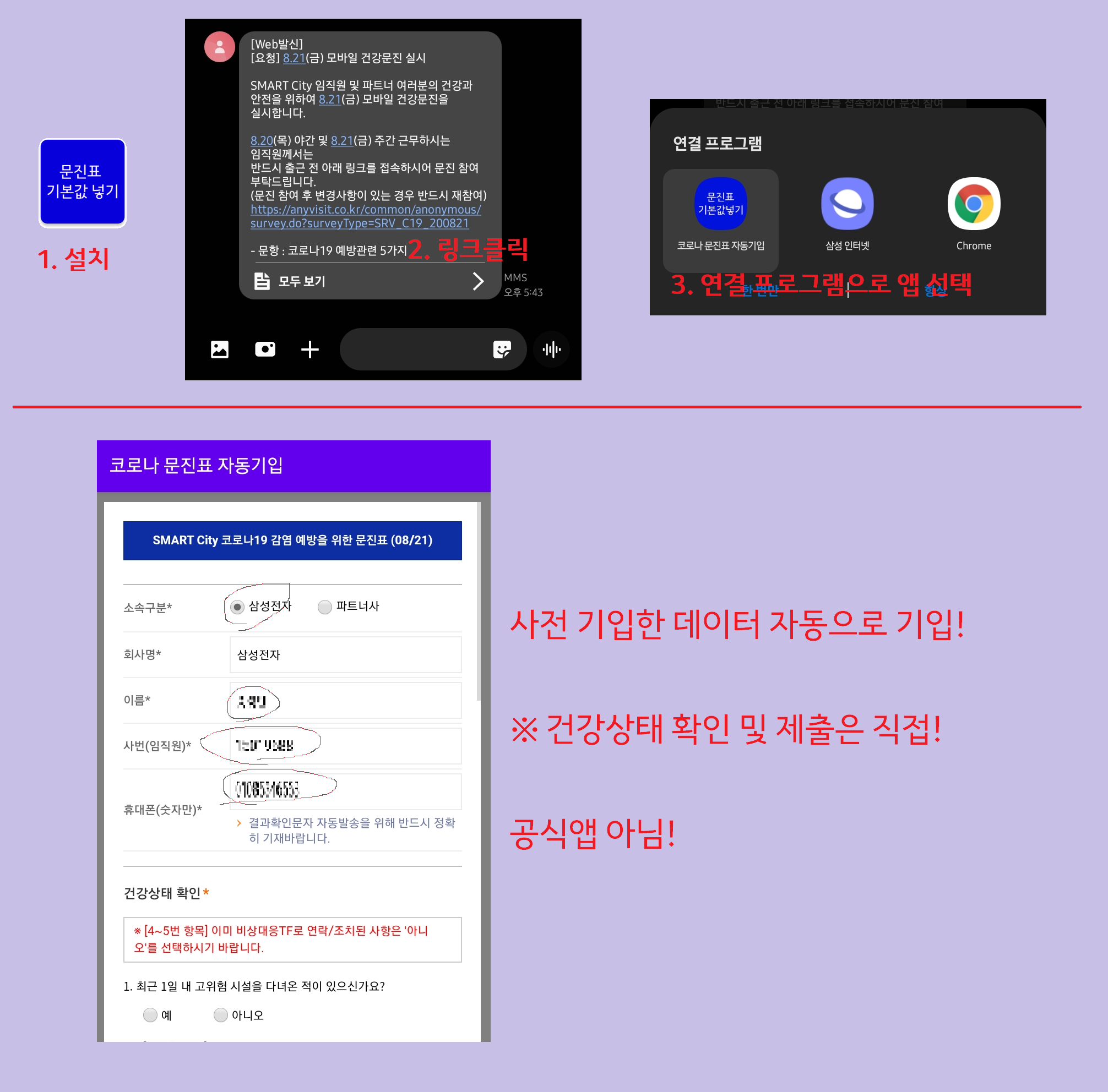 (구미) 삼성전자 데일리 코로나 문진표 자동 기입을 도와주는 앱입니다!