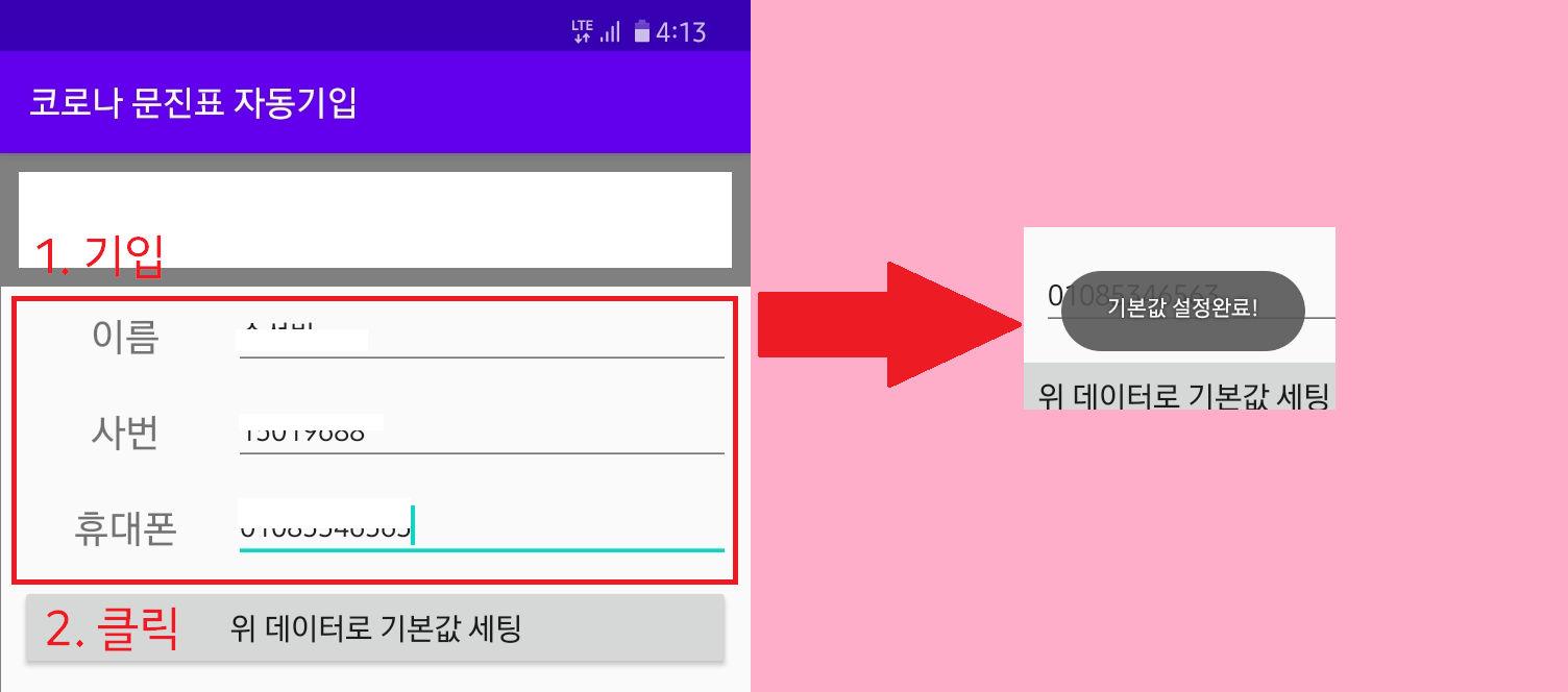 "개인정보" 부분만 자동으로 기입해주는 앱입니다.