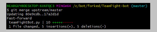 아래 커맨드로 fetch 된 코드중 upstream 의 master 브랜치 코드 merge